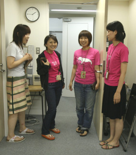 お昼行ってきま〜す ちょっと遅めのお昼にわらわらとでかける女子乗組員。 女子のいちばん人気は、どうやら 「I miss you」のよう。 「あなたがいなくて、さみしい」 なんてそうそう口には出せないけれど 「Tは口ほどにものを言う」 っってことかしらん? あざやかなマゼンダが雨に映えますね〜。 同じTシャツでふたりででかけるのはさすがにはずかしいと隠す と「なんで〜」と笑顔の 注目は、2枚目! 乗組員の中でただひとり! センテリTシャツを着てくるつもりで T-1井上嗣也さんのTシャツを着てきた ま、いいや。 わたしもそろそろお昼行こう。 2007/07/04 14:24 |