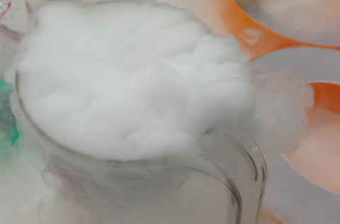 せっかくアイスを楽しむならば、演出が必要だとおもって、そのドライアイスを使ってみました。