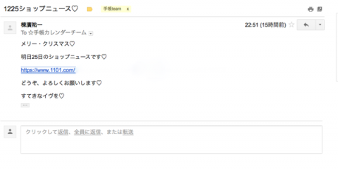 から手帳チーム宛に届いたメール。