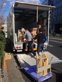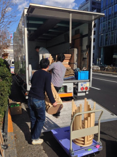 クリスマス・イブのことでした。 12月24日の朝。 人々が「クリスマス」の雰囲気いっぱいの青山の街を歩いているなかトラックを横づけして、荷物を積み込むお兄さん。 「はたらきたい展。OSAKA」の展示に必要なものを、こうしてトラックに載せて運んでくださるという大役を受けてくださった会社のかたです。 (2枚目の写真で、荷台の奥に 少しお姿が見えるの、わかりますでしょうか?) そして、そんなお兄さんのサポートをしているのは お兄さんは、12月24日のに出発し、12月25日の夜に大阪へ。 荷物がぶじに梅田ロフトさんへ届いたというご報告を今朝、いただきました。 おしゃべりが楽しくて粋なお兄さ〜〜ん!! ありがとうございました! (お兄さんは、ふだんから 美術品とか、アート関係の展示物を 専門に運んでいらっしゃるそうですよ。) また、もし「はたらきたい展。」が巡回するときは、どうぞよろしくお願いしますっ。 2013/12/26 10:16 |