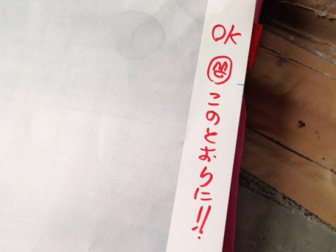祖父江慎さんの「OK」の赤字が現場でまぶしくひかります。