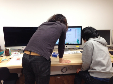 コズフィッシュからやってきたデザイナーの鯉沼さんとうちのデザイナーの岡村がさっきから何時間も白熱しています。