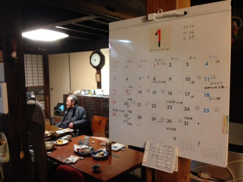 佐賀の親戚の家に新年のご挨拶にやって来たところ、居間のいい場所にホワイトボードカレンダーが。