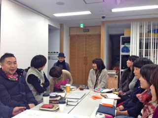 が入ってきたのですが、もっと真ん中に来れば‥‥というみんなの声をしりぞけてなぜかとても端っこに席を置いてチマっと座っていました。