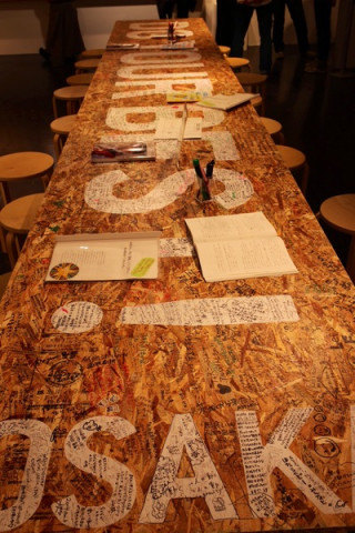 はたらきたい展。OSAKA はたらきたい展。OSAKAの会場に久しぶりにやって来ました。 そしたら、 (ロフトさんからお聞ききしてましたが) みなさんの残した感想が、本当にすごいです。 会期半ばですが、大きなテーブルにはほぼ書き込みのスペースがなくなっていて、3冊置いてあるコクヨさんのキャンパスノートにも長い感想が、ギーッシリと書かれています。 到着してからずっと読んでいますが、まだまだ終わらないし、ぜんぜん飽きない。 たくさんの人の「きもち」というものがこの展覧会に人の息遣いとか、気配とか、あたたかさをプラスしてくれています。 本当に、おもしろいし、感動します。 大阪近郊にいらっしゃるみなさん、これを読むためだけでも、ぜひ来てほしいです。 2014/01/10 13:11 |