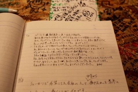 最終日です 梅田ロフトで開催中の 「はたらきたい展。OSAKA」は本日19日が最終日です。 オープンからたくさんの人に来ていただいて僕たちも、ロフトさんもうれしいけれども、超おおわらわで、でも、それ以上にうれしくたのしくやってます。 いろいろと、ふだんよりお待たせしてしまうと思いますが今日の閉店後にはおおいそぎで撤収!してしまうので気になっていたら、足を運んでいただけるとうれしいです。 およそ一週間ぶりに来ましたが案の定ノートも、机も、感想でギッシリになっていました。 これを読むだけでも、やっぱりすっごくおもしろいし、本当にいろいろ思って、考えます。 2014/01/19 12:43 |