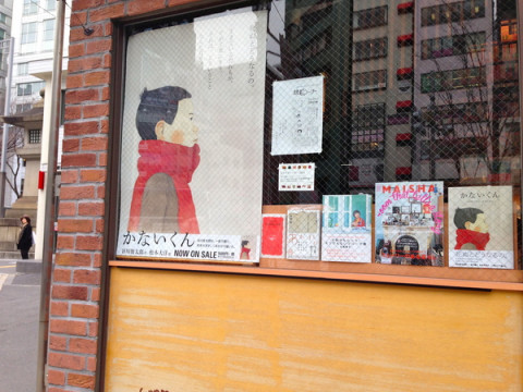 お昼ごはんを食べに外に出て、帰りに山陽堂書店さんの前を通ったら『かないくん』の本とポスターがウィンドウにありました。