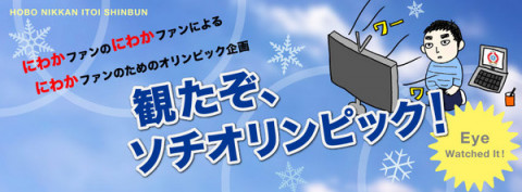 Facebookページの画像が来た。 さて、ぼちぼち盛り上がってるソチオリンピック。 デザイナー・ これはなにかともうしますと、あれです。 「観たぞ、ソチオリンピック!」の Facebookのページ用の画像。 「ほぼ日」の 「観たぞ、ソチオリンピック!」のコンテンツのほかに、このFacebookのページでは、こぼれ話やら、本編に掲載出来なかったメールやイラストなどをアップするのとともに、弊社のにわかファンの 「にわかコラム」など掲載の予定。 さらに、みんなでつくる 「観たぞ」シリーズの用語集 「ミタゾペディア」のほうも今回もみなさんにバリバリ更新していただく予定。 (管理人さ〜ん、よろしくで〜す!) ああ、楽しみになってきましたねー。 2014/01/27 16:02 |