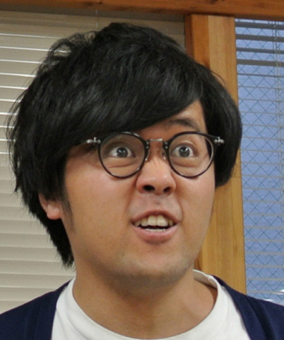 マンガメガネがマンガメガネのTシャツを着て