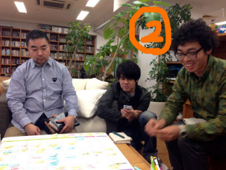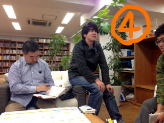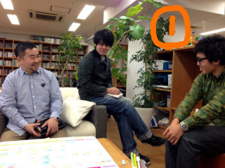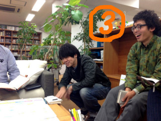 椅子なしおっくん 縁側で、読みものチームの臨時会議をしています。 臨時なので、ソファを中心にしてその場にある椅子などをみんな持ち寄って座ったのですが、 「ひゅー、かっこいー!」と声をかけるみんな(1)。 しかし、途中で携帯電話におっくんはしゃがみこむようになりました。 30分ほど経過(2)。 その後、挙動がおかしくなっていたので、訊ねたところ 「あ‥‥足がしびれてきたようで」 とのことで(3)、再度 さらに会議も終盤になってから おっくんは足のしびれ以外でどのポイントが頭にはいっていたのかわかりませんが、充実した会議でした。 2014/02/04 15:00 |