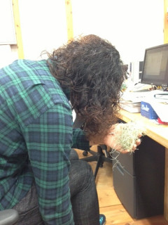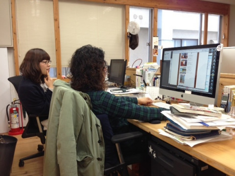 机まわりのご紹介(ひだりとうしろ) 新人ズは、スガノさんに 「ただいま製作中の投稿」という宿題をいただき、iPhone片手に社内をうろうろ。 わたしは自分の机周りのみなさまを紹介いたします。 わたしの左手には それぞれの書いた製作中を振り返り中。 パソコンの隙間を覗くと 今日もうつくしい! そしてうしろを振り向くとやさしいまなざしの (ダースベイダーと一緒に)。 最後に岡村さんが育てているエアープランツ。 ペットは飼い主に似ると言いますが、たしかに… (星野) ※ おかむーと、もじゃもじゃプランツ。 いつ見ても、いい。 2014/02/06 12:25 |