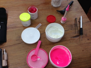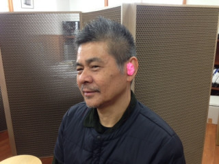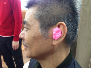 社長が、オリジナルのイヤーモニターというものを作ってもらうために、耳型をとっています。