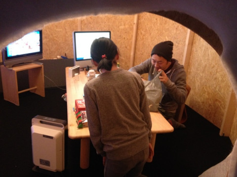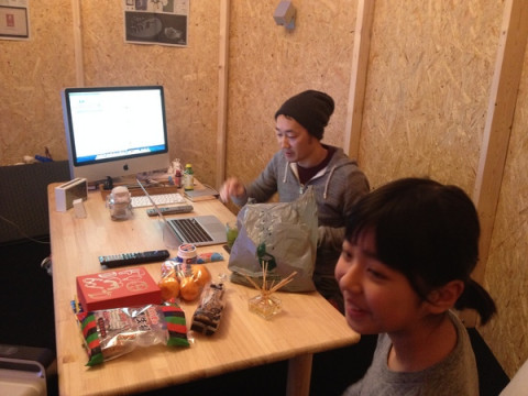その2 バレンタインのチョコレートをプレゼントしてくれたあーちん。 現在「観たぞ! ソチオリンピック!」で小屋にこもっている せんべいにはるさめスープ‥‥? あっ、これは、オリンピックを夜な夜な観戦している永田の夜食だ! Facebookにて募集をし、共有のメールに 「永田の夜食」という謎の件名のメールが届くようになった、あれだ! あーちんの夜食の差し入れに、 オリンピック小屋から戻ると、 「え〜なになに〜」といいつつ、袋の中をのぞくあーちん。 「!!!」 出して、出して、あーちん、袋から出して! 「OHTOのジャムパン屋さんの くまだ! えー、いいのー!? ちょうかわいいよー。 名前どうしようかなぁ‥‥。 うーん、くまおHTO?」 くまおHTO! わはは、いいね。 「でもちょっと呼びにくいか。 名前、考えるね」 最後に、あーちんとくまおHTO(仮)で記念撮影。 さっそく、今日から一緒に寝るんだそうです。 想像しただけでかわいい〜。 あーちん、今日は来てくれてありがとうございましたー! 2014/02/14 19:44 |