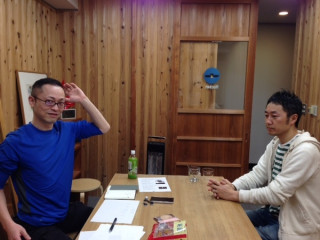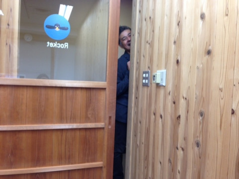 オトヤさんと、オリンピックでこもり中の久しぶりの永田さんと、ミーティングをしていたらのぞく人がいました。