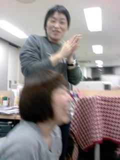 ポカポカ騒動リターンズ! 今日は仕事おさめ。 すっかり社内に人が少なくなりました。 「武井さん、2007年の年おさめに、 あれ、聴きたいですぅ〜」 「あれ、痛いんだよなぁ〜。 曲はなにがいい? ぼくの知ってる曲なら、なんでもいいよ」 えー!リクエスト出来るんだ!? とまどう、一同。 「おめでたいやつで、おねがいします!」 「ポカ〜 ポカポカポカポカポカ ポカポカポカポカ〜〜♪」 うわー! もう〜いくう寝るとーお正月〜♪ 一同大爆笑。 「じゃあ、ジングルベルやってくださいー!」 「津軽海峡冬景色!」 すべてのリクエストに応えるシェフ。 すごすぎるー! 笑いすぎて、腹いてぇ〜〜っ! 5メートルくらい離れたところにいる *「ポカポカ騒動」について詳しくは 11/29 10:42の投稿をご覧下さい! 2007/12/27 22:36 |