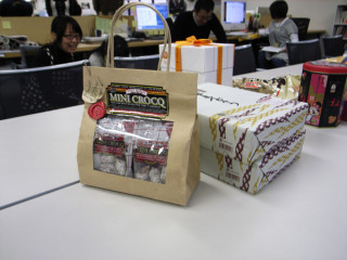 最後の晩餐テーブルには、年末年始に各地に散った乗組員からのお土産も置かれております。