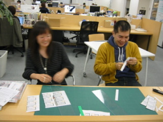 さんが連弾をひくように作業をしています。