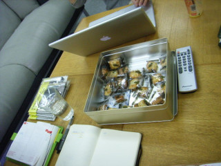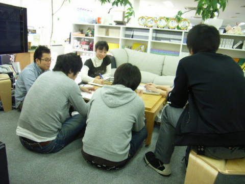 ふっふっふっ・・・ さきほど15:25にモギさんが聞き忘れた会議の内容を、わたしは知っています。 直接みなさんにきいたのですから確実な情報です。 さて、その答えとは! 「ひみつ?」 「ひみつ会議だよ!」 ええ〜・・・ 真相、つかめず。 こんなオープンなスペースで秘密も何も無いと思うのですが、そういうことだったみたいです。 おせんべいを囲んでいるので、別名「おせんべい会議」だそうです。 しかしせっかくソファがあるというのに、誰も座ろうとしないのはなぜなのでしょうか。 もしかしたらおせんべいを取りやすい位置にそれぞれ陣取っていたら自然とこういう形になったのかもしれませんね! 2008/01/10 17:53 |