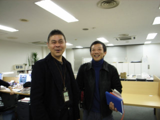 やってきた。 ああああ! これはこれは、社長! 会議はおわったですか? マフラーをとったってことは、あったまってきましたか! 「いや、そんなことより、 後ろから不意に 柳瀬さんから 声をかけられてビックリしたよ!」 こちら、社長の右側にいる殿方は、いつもいろいろおせわになってる日経BPの柳瀬さんです。 柳瀬さんからの電話は、 「やなせ」の前にちいさい「ぃ」が聞こえます。 つまり、 「日経のぃやなせです。」と電話の声は言うのです。 以上、柳瀬さん豆情報でした。 2008/01/15 20:48 |