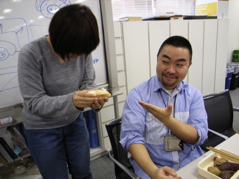 がどこかから調達してきたうにのパテが賞味期限を迎えそうなので、本日、シェフ自らパンを買ってきてくれて、パテを塗ってくれる催しです。