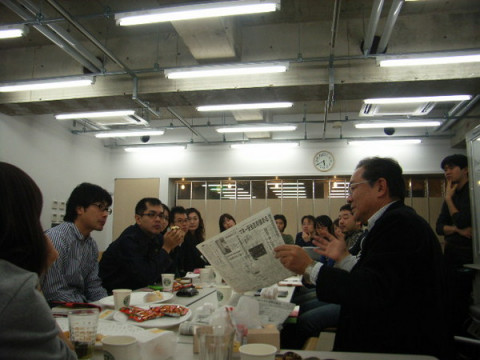ほぼ日大学経済学部? 11月の社員旅行の時には、小木曽教授率いる 「小木曽ゼミ」なるものが目撃されましたが、今日は大ホールで講義があるようです。 ちらっと授業風景を覗いてみると・・・ うわー、めっちゃ人いる!! 全部で30人ほどおりますでしょうか。 人気科目です。 乗組員のほとんどが小木曽ゼミの受講生だったんですねー。 ところで、これ、なんの講義? お菓子があってなごやかなムードですが、教授、日経新聞を片手にむずかしい用語を説明しています。 ええーっと・・・ケイザイガク?? 私にとってはなかなか難易度が高そうな講義。 今日のテーマは 「日経新聞の読み方」 といった感じでしょうか? みなさん、真剣に聞いていますよ。 これを期に、会社にある日経新聞の争奪戦が起こったりして。 私もみなさんを見習ってちょっとずつ勉強していこうっと! 2008/01/18 19:22 |