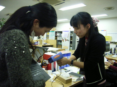 今日は厄日? 静かな青山のオフィスに、またもやあの音が響きます。 ブォォォォォォォ〜〜ンブィィィィィィィ〜〜ン むむ、この音、古い掃除機のような・・・ということは再び かと思いきや、今度の被害者は、アロハさん! 「パソコンにお水こぼしちゃったの?」 ドライヤーで乾かしている音だったのです。 ひえー、だだだ大丈夫ですか?? データ飛んだりとか、感電したりとか、しません? お手伝いしている 「この島、今日は水難の相が出てるわ!」 でも意外と余裕な ついでにステキな黒髪も乾かしちゃってます。 2008/01/22 18:59 |