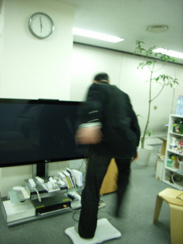 遅れてきたエース? 昨日の説明会には出られなかったのですが、 おっ、興味津々ですか? 残念ながらバレーボールはないみたいですけど、やっぱりスポーツ好きの血が騒ぎますかねー。 昨日説明会に参加していた 「うわやっべ、 ヨガとかむずかしそっ!」 とかいいつつもさっそく立ち木のポーズをとります。 おお〜できてるじゃないですか! と思ってシャッターを切ったその瞬間に・・・! バランスボードから落ちました。 かっこいいところを写せなくてすみません〜!! 本編でのご活躍に期待しております! 2008/01/31 18:52 |