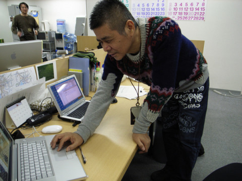 たまにはあっしも、社長がモニタをチェックしてたり、会議してたりするところを写したくあります。