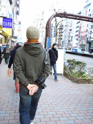 じゃ、文房具屋に! 「はい! いきますよ!」 へ〜い。 じゃあ、せっかくだから、その太郎さんの像のしたでポーズ! ぶ〜らぶ〜ら。 や、ヤマシタさん、これは、もしや、 「その通りです!」 やっぱりそうですね。 しかし、目的をもった散歩は、散歩道にしてみると、よこしまな散歩におもわれませんか? そんなことないですか? 「どうでしょうかね。 あ、あそこに帽子やさんが!」 なにせ、われわれ帽子作りに励んでおりますので、帽子が気になります! ぶ〜らぶ〜ら。 2008/02/05 14:49 |
