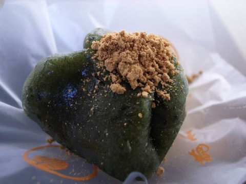 おばあちゃんたちが摘んだよもぎの葉でできたお餅かな??