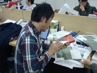 数日前のできごと その1 永田さん宛に凸版印刷さんからいいものが届きました。 「小さいことばを歌う場所」の第2弾の本の表紙サンプルです。 「永田さん、永田さん。 来ましたよ。表紙!」 「おっ。見よう見よう」 というわけでチェックを。 今回の本は、またちょっとあたらしいことを試みているところです。 今月中には ちなみに うそです。いっしょになってチェックしてくれているのでした。 ほぼ日乗組員もたのしみにしている本、はやくみなさんにお届けしたいっ。 2008/02/06 21:49 |