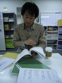 すごいよ。うん。 さて、「はたらきたい。」はもう入稿だけど、 「小さいことばを歌う場所。」の第2弾である、 「思い出したら、思い出になった。」のほうの製作状況はいかがなのか? そこで、コーヒー片手の御方よ。 「ん。 追い上げるよ。 もう、びっくりな追い上げだよ。 文字数でいったら、 圧倒的に少ないからね! だって、ほら! ほらほらほら!」 そういって、でき上がった原稿やら、タイトルを刺繍した布やら (これがスキャンされて表紙になる) ばば〜んと広げはじめました。 2008/02/08 18:15 |