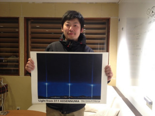 ヒカリ 今年の3月11日も、 3本のヒカリが気仙沼の空を彩ります。 この企画は、 東北ツリーハウス観光協会の企画委員、斉藤道有さんの活動の1つで、2012年にスタートし、今年で3回目になります。 3回目の開催にあたって、道有さんから、ひとこといただきました。 「このプロジェクトは 決して何かを 押しつけるものではありません。 当日の自然条件や見る人によっても、 その光の見え方は違うと思います。 ただ、そういうものが誰かのために 私たちの街にはあるんだということを 知っていてもらえたらと思います」 明日の18時半から深夜0時まで行われますので、気仙沼近辺にいらっしゃる方は、ぜひ夜空に目を向けてみてください。 また、運営グループのみなさんは、今年も9日から3日間、 気仙沼の今を伝えるページを更新しています。 ぜひ、こちらもチェックしてみてくださいね。 明日、3月11日は 「ほぼ日」でも特設ページでテキスト中継を行います。 どうぞ、おたのしみに。 それでは、また明日。 2014/03/10 21:45 |
