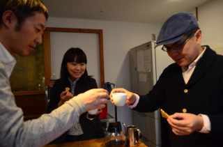 いないので。 福田さんがいないので、むかしの写真をはりあわせて一緒にコーヒーを淹れてるみたいにしてみました。 お元気でしょうか、福田さん。 今回のブレンド、 「TRIP TO DRIP ジブラルタル」もたいへんおいしい配合具合ですよね。 さすがはアンカーコーヒーですね。 福田さんがいないので会社の仲間と飲みました。 好評ですよ、福田さん。 過去のシリーズもそれぞれに個性的でそれぞれにおいしかったのですが、 「ジブラルタル」は飲みやすさでいうとたぶんいちばんですよね福田さん。 「自分でドリップ初心者さん」にはぴったりの入門ブレンドではないかと。 いま、受注販売を受付中ですのでよろしければどうぞ。 こちら、 「カッパとウサギのコーヒー屋さん」へ。 パッケージの絵は福田さんです。 ね、描いたんですよね、福田さん。 2014/03/14 18:44 |
