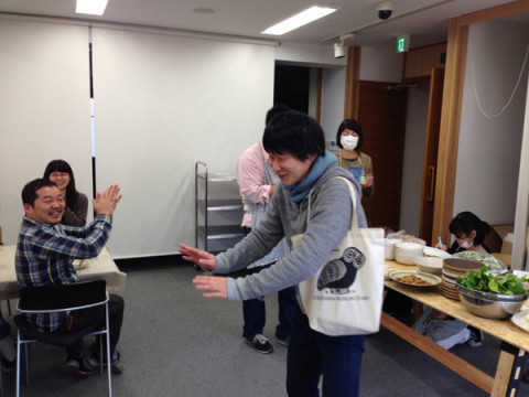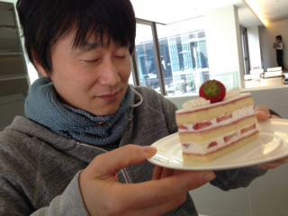 利之さーん♪ 本日、3月18日、午前中にとあるカフェで福田利之さんと打ち合わせていたのですが、その場で、きょうが利之さんのお誕生日であることを知りました。 急きょショートケーキでお祝い。 お店の人に「ロウソクありますか?」 と尋ねたら「ありません」と言われました。 祝いたい気持ちがおさまらなかったのでそのまま会社にお連れして、 「給食」をプレゼントさせていただきました。 乗組員、拍手喝采。 利之さんの人徳と人気を感じます。 おめでとうございます、福田さん。 いくつになったんでしたっけ? ‥‥‥‥ああそう!? けっこういきましたね。 でも若く見えると思います! 2014/03/18 17:38 |