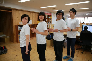 あ、アイドル‥‥。 これは、いつかのことじゃった。 Tシャツのサイズサンプルをおためしで着ていたんじゃよ。 こういうときは、その場にいて、まあ、そのサイズを着るんじゃないか? みたいな人たちをナンパするわけです。 今回はなかなか乙な人選だったし、ナイスなジャストサイズ感がありました。 なんていうの‥‥お揃いの服というものはそこはかとないアイドル感がありますね。 よく言いすぎていることはわかっているんです。 雰囲気の問題です。雰囲気の。 ところで、私は太ったなあ。 2014/03/19 12:33 |