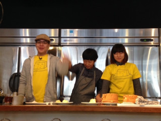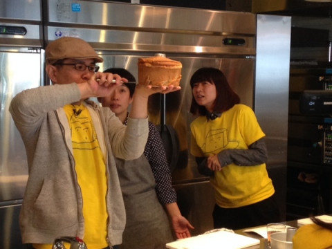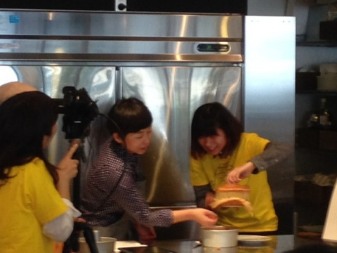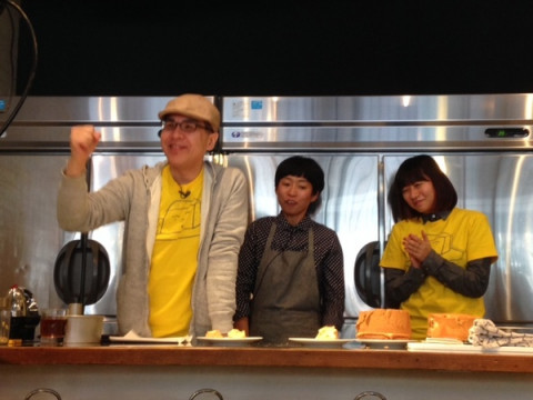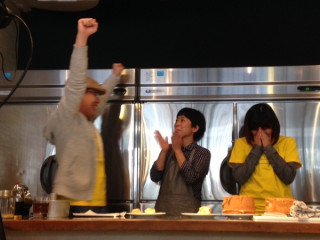 ヤマシタVSゆーないと! 昨日からシフォンケーキをつくり、キッチンスタジオでなかしまさんの前で型からはずし、ドキドキしながら勝敗の結果を待つふたりです。 では、ケーキの見た目、型からはずした様子、味や柔らかさを見ていただき、シフォンケーキ対決の結果を、なかしまさん、お願いします!! 「ほとんど一緒なのですが‥‥ 今日のケーキについては‥‥ ヤマシタさん!」 ふくらみや、型を外すところが勝敗のわけ目だったようです。 どうですか! ヤマシタの喜びっぷり。 宿命の対決、三勝二敗でヤマシタリードとなりました。 さて、メールやツイートでいただいた質問に答えながらなかしましほさんのシフォンケーキ作りを中継しています。 Ustream中継はこちらから。 スマホからご覧いただくときは直接Ustreamのページをご覧ください。 2014/03/21 14:30 |
