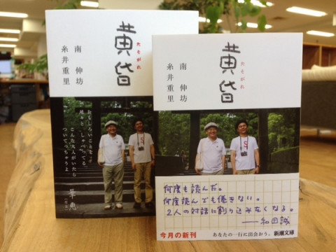 『黄昏』、小型化? モギが持っているのはなんでしょうか? え? くだらなさ全開、しょうもないおかしさが満載の名著、『黄昏』? 南伸坊さんと糸井重里があちこち小旅行しながらめくるめく雑談をくりひろげる傑作、『黄昏』? じゃ、2枚目の写真をご覧ください。 え? 『黄昏』が2冊? しかもちっちゃくなってる? この、ひとまわり小さな『黄昏』は文庫版。 そうです、『黄昏』が新潮文庫のラインナップに加わったのです! いやあ、めでたいめでたい。 まだの人はぜひどうぞ! 帯は和田誠さんが書いてくださいました。 うれしいなあ。 それにしても、もとから分厚い『黄昏』、内容もそのままに文庫化して、表紙のイメージも踏襲したら、ほんとに「ミニ『黄昏』」という感じになってしまいました。 御値段もサイズもコンパクトになって全国の書店にすでに並んでます。 文庫版『黄昏』、旅のおともやただのヒマ潰しなどにぜひどうぞ。 あ、なんか、 「モギが本を持ってる写真」連発になっちゃった。ま、いいか。 2014/03/25 12:42 |