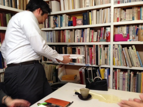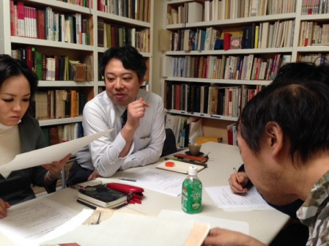 いろいろな資料や絵を出して、コズフィッシュの祖父江さん、鯉沼さん、凸版印刷の藤井さん、森岩さんと打ち合わせをしました。