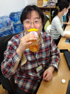 おみやげのヒゲをびしっと装備し、今日も宇宙部は頑張りマス。