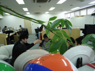 がよく木陰からみんなを見守っていますが、今日は、その位置から、ソファーの会議をみてみました。
