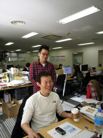 時間旅行中。 モニターをみながら、にたにたしている 今日稼働しはじめた、自作のタイムマシーンを操作して、お楽しみ中。 (タイムマシンは、 「気まぐれカメら」の 「日付を指定して見る」を クリックしてみてくださいね。) 妙にメカメカしいデザインを見つつ、 「こう、なんていうか、 宇宙部の操るハードな感じが 表に出たっていうか?」 などと話をしつつ。 ランダムボタンもついてますので、お時間のあるときに、ぜひ、「きまぐれカメら」内の時間旅行をおたのしみください。 また、こちらの仕組みは、このページにも装備される予定でございます。 もうちょっとお待ちくださいませ〜。 2008/02/14 15:10 |