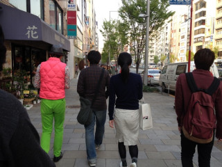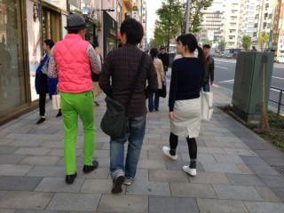 目立つ 会社の近くを歩いていたら、視界に派手な人が入ってきました。 その瞬間、 「うわっ、TOBIさんだ!」 と発してしまいました。 なんだかわからないけど、 レ・ロマネスクのTOBIさんだと思ったんです。 そしたら、やっぱりTOBIさんでした。 さらに、よくよく見たら、その隣にいたのは 不定期更新で連載中の 「ひどい目。」の取材だったようです。 次はどんながひどい目話が繰り広げられるのでしょうか。 人のひどい目話をたのしみにするのはどうかとも思いますが、実にたのしみです。 2014/04/08 18:09 |
