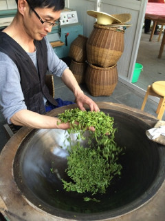簡さんから春のおたより。 簡さんは3月から4月にかけてお茶の産地をめぐりおなじみの農家さんを訪ね収穫から製茶までずっと「見はり」をしています。 出張中の簡さんから写真付きのメールをいただきました。 今年のお茶は簡さんいわく 「絶好調のできばえ!」だとかでメールの文面からしてとても興奮していらっしゃいました。 とりわけ簡さんをワクワクさせたものは初めてつくった「山桜のお茶」。 今年は気候の関係で梅と桜が同時に咲きました。 めったにないことなので、農家のかたに頼み特別に桜をお茶に仕立ててもらいました。 かすかに塩のような風味を感じる、春をぎゅっと凝縮したようなお茶です。 (梅は甘い味わいと香りです) もちろん、一番摘みの龍井茶もほぼ日のために確保していただきました。 簡さんが見はりつづけて20年の獅峰龍井の味は去年収穫したものと比べながらぜひ味わってみてください。 (試飲用としてセットにしました) お茶の樹も20年経つと、深みがでるんだ!と感動しましたよ。 「簡さんのお茶」は明日〜21日午前11時までの予約販売です。 春のお茶をぜひ味わってください。 2014/04/14 11:00 |