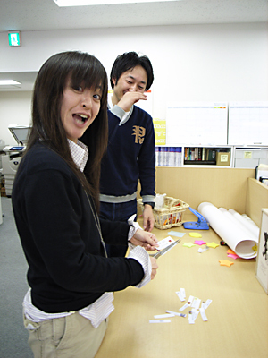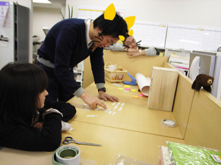 オフィスの隅と隅からひょっこり頭を出す、