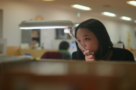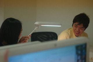 と、電気スタンドで