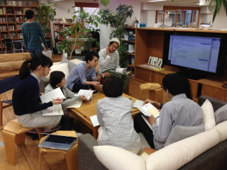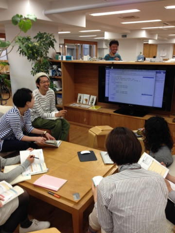 先生を囲んで、デザインチームが勉強会を開いていました。