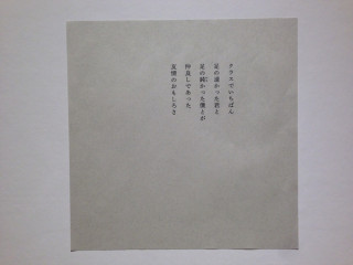 福岡だけの展示 大阪展でも新しい展示を増やしましたが (それは福岡にも持ってきてますが)、この福岡展でもさらにまたひとつ、新しい展示を増やしています。 それが、こちらの小部屋。 筋ジストロフィーを患う詩人、岩崎航さんの五行歌と写真家・齋藤陽道さんの写真で構成されています。 もちろん 「はたらく」についての展示です。 岩崎さん、齋藤さんの作品を使わせてもらうので何だかプレッシャーでしたがなかなか満足のいく感じにできたのでほっとしました。 ぜひ来て、見て、読んでほしいです。 2014/04/23 21:07 |