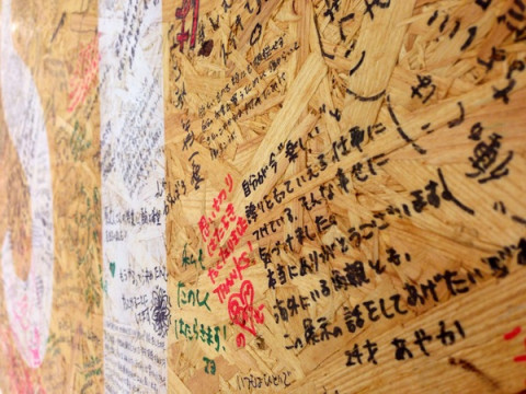 東京&大阪のテーブル おはようございます。 きのうに引き続き、 「はたらきたい展。FUKUOKA」 の設営現場よりテキスト中継です。 あさ、現場に着いたら東京&大阪のテーブルが会場の外壁に展示されていました! どーん。でかい! どちらもご来場くださったみなさんのメッセージでいっぱいです。 これ、読んでいてほんとに飽きないんですが、今回はなんと、貼ってあるのが会場の「外壁」なんで入場しなくても見られるんです。 これを見に来るだけでもおもしろいのであす以降、福岡パルコの8階に、ぜひー。 2014/04/24 11:30 |