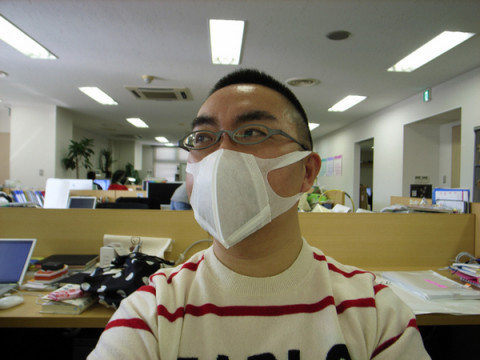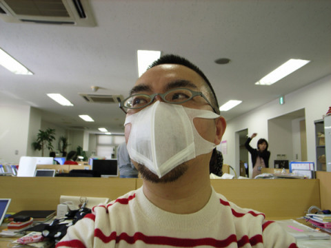 、マスクが上がりすぎてて、下からヒゲが見えます。